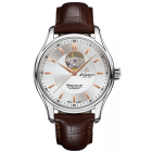Niezwykły zegarek męski ATLANTIC Worldmaster 1888 Lusso to model o ponadczasowym wzornictwie. 52757.41.61  jest limitowaną wersją wyprodukowaną jedynie w liczbie 888 szt.! Klasyczna linia nawiązuje do pozostałych zegarków serii Worldmaster. Duża, okrągła koperta o średnicy 45 mm ze stali szlachetnej oraz brązowy, skórzany pasek to elementy najwyższej jakości. Natomiast srebrna tarcza została ozdobiona ręcznie nakładanymi indeksami, co świadczy o tradycji tej marki. Zegarek otrzymał antyrefleksyjne, szafirowe szkło odporne na wszelkie zarysowania. Samo serce tego wyjątkowego czasomierza to wyrafinowane dzieło zegarmistrzowskie z rezerwą chodu 40h, a okienko typu "open heart" na cyferblacie pozwala obserwować tętniący życiem mechanizm automatyczny. Przeszklony dekiel pozwala napawać się widokiem ozdobnego szlifu genewskiego na elementach mechanizmu. Wodoszczelność klasy 50m pozwala na sporadyczny kontakt z wodą.